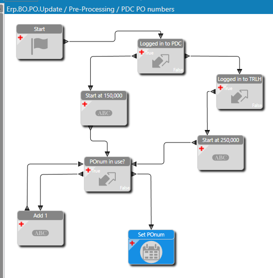 When PDC came into the fold, I made them a site but wanted them to have their own PO numbers, and in fact they already did have their own, in the 100,000 range (around 143000 at the time). So to honor that, I made this BPM for users logged into the PDC site.