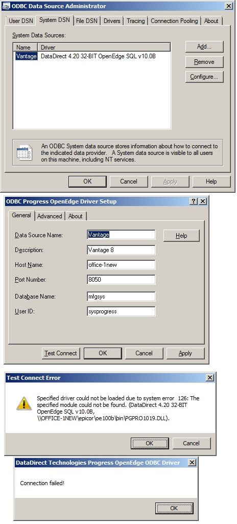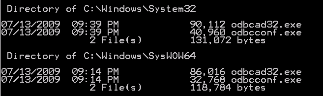 There are two versions of ODBC32 setup program on 64 bit clients.