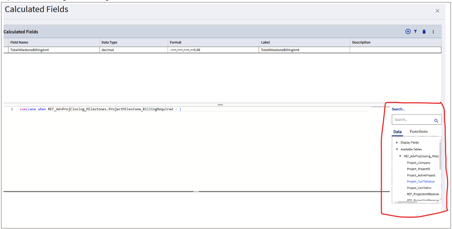 Calculated Fields: Tiny box way down on the bottom right for Data and Functions, can’t expand it, need to scroll up/down and left/right. Frustrating to work with