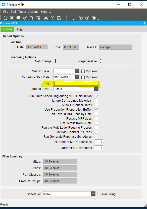 You should of set up a path when kicking off MRP. If you did not you will not have a log file. Other wise mine go to here…\{my appserver}\EpicorData\Companies\TASC\Log\manager\MRP_NetChng.log
