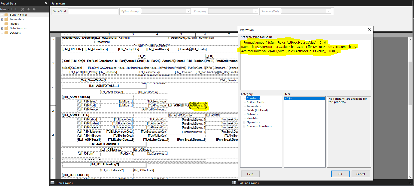 Earned hours (Setup)= (Est Setup Hours) OR (ActSetupHours) , whichever is less.