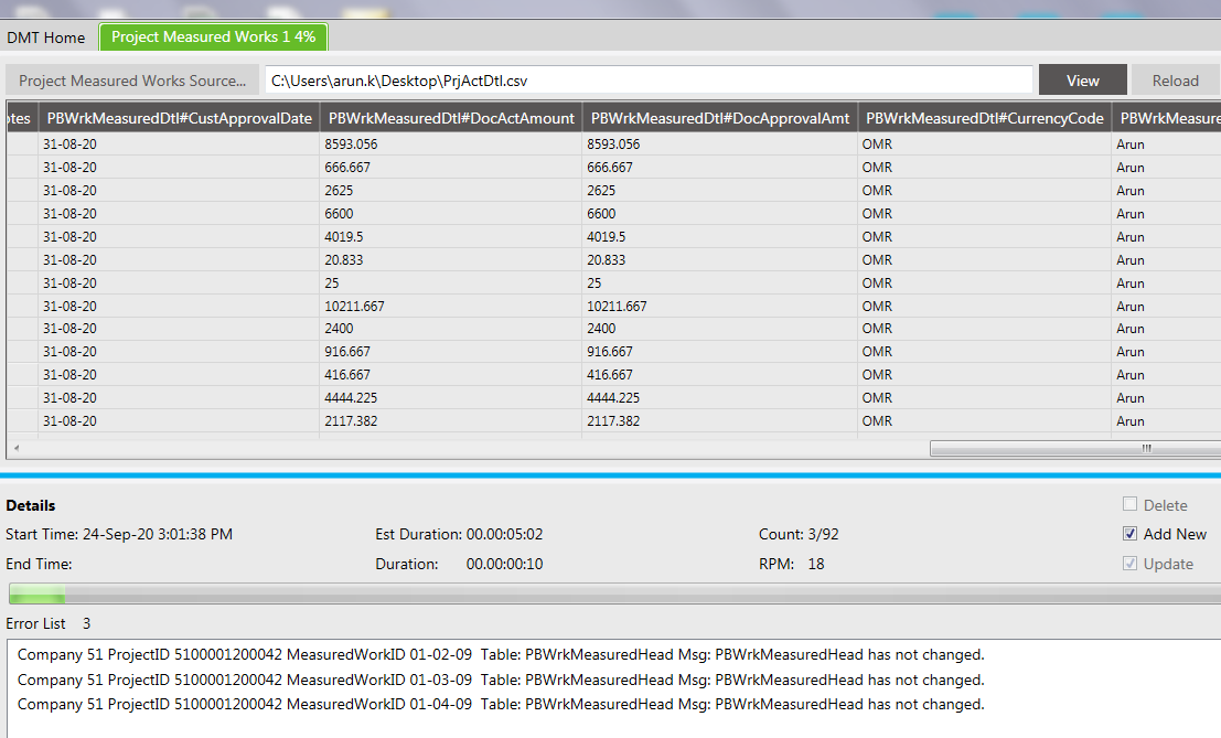 Wish any one in the forum to help me a template for Project Measured Activity Detail DMT…