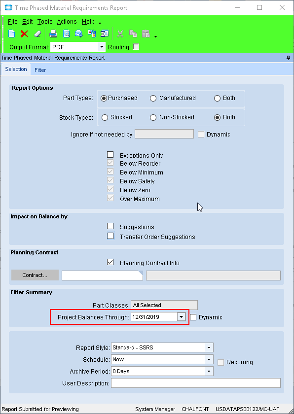 I have been browsing the forum looking for a way to project where inventory levels will be at the end of the year for all inventory based off transactions that are scheduled to happen in the future. I have been trying to run the Stock Status Report and using the Dynamic option for the “Stock Status as of” and selecting “End of Month + 2”. This doesn’t seem to be changing the inventory for any of the parts when compared to the Stock Status Report when run for the current day. I know there are scheduled transactions on several of the parts between now and the end of the year and I am confused why this is not showing up in my “End of Month +2” report. Any help that can be offered is greatly appreciated.