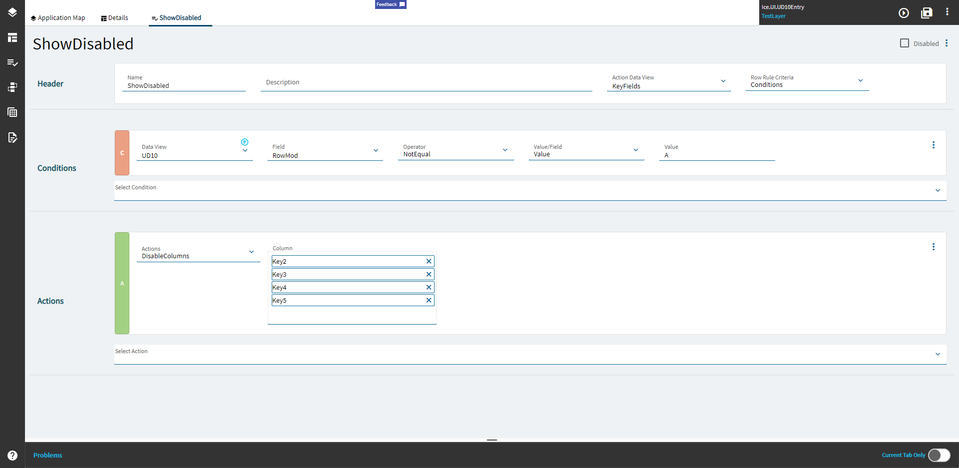 The error is that the field remains editable and if the user tries to change the Key3 field, the system creates a new record without notifying the user.