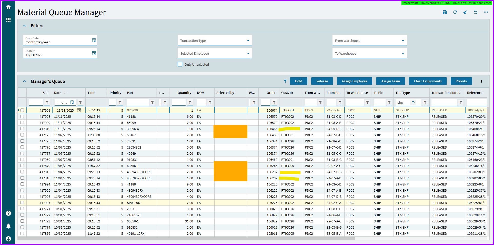 Here we are not “picking” all orders on EKW; only internal customers for now.