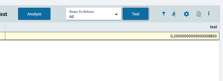 Here’s how to verify: Make a new BAQ. You don’t need to add any tables. Add one calculated decimal field, adding 0.1 + 0.2 and edit the format to show 20 decimal places.