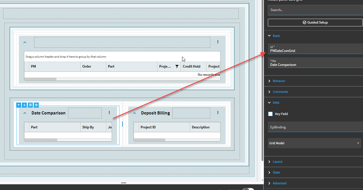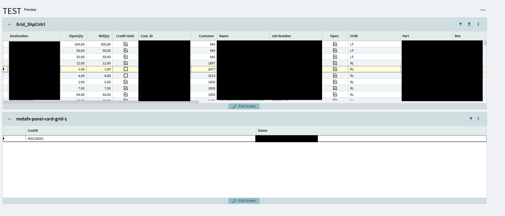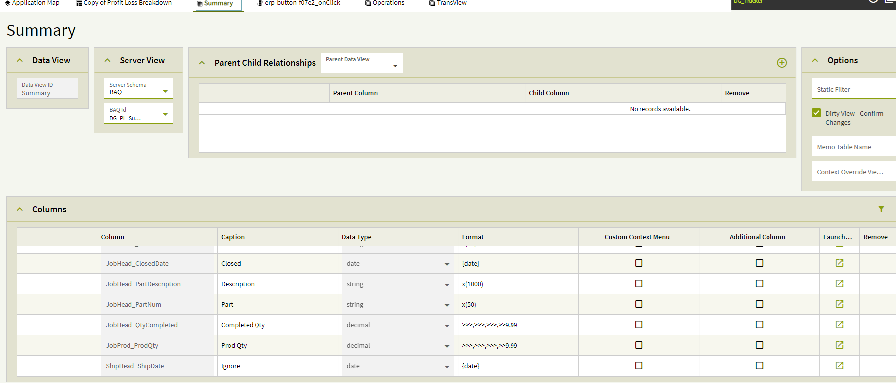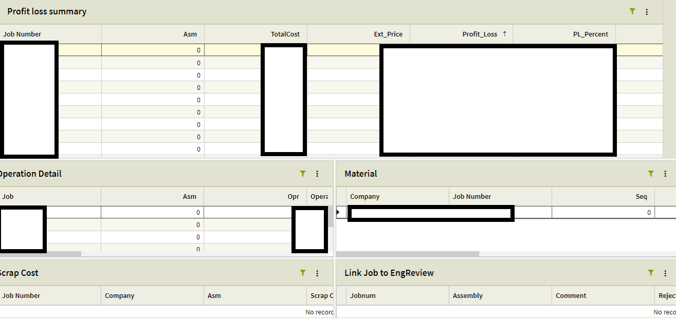 I have the trackers working to fetch the original list in the first (Profit loss summary) grid, and then the four grids below it are hooked to their own BAQ’s, but in classic if I clicked a row, it would populate the grids below based on the published column.