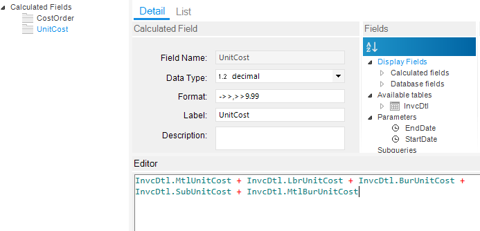 For convenience, I created a unit cost calculated field too: