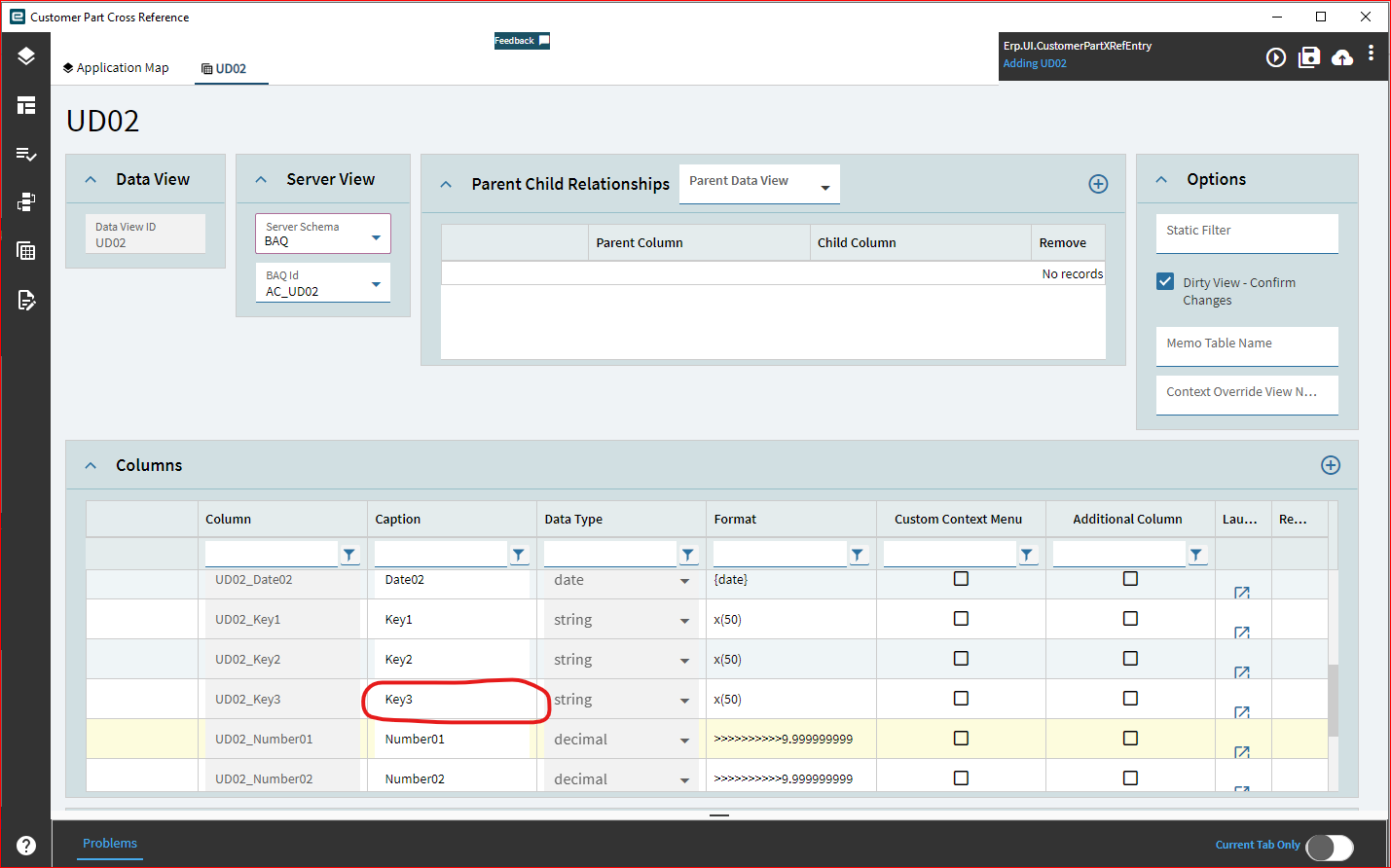 So, the only rows that will be returned to the UD02 dataview will be where UD02_Key3 = '?{CustXPrt.XPartNum}'
