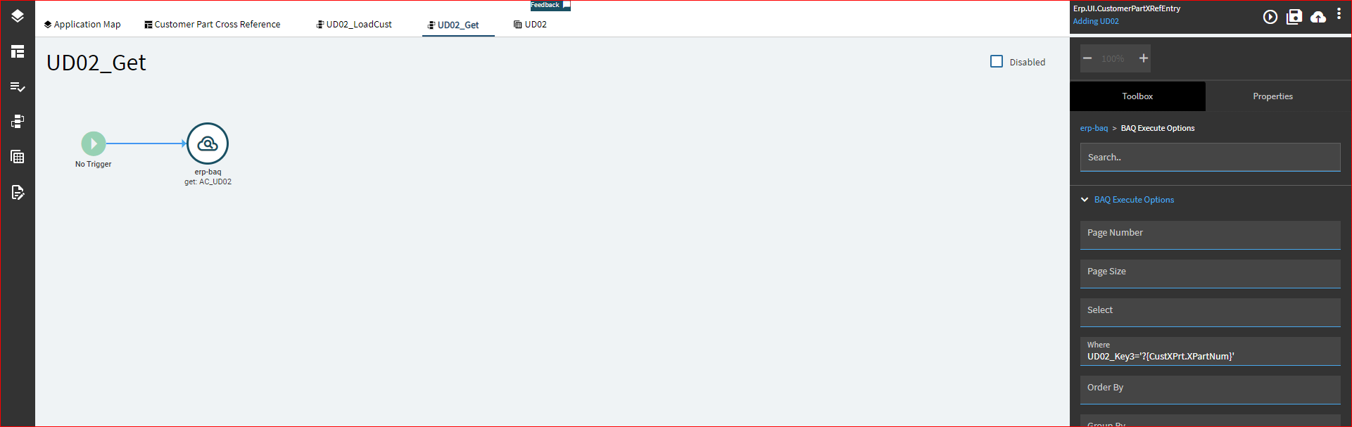 I am working on recreating some of our entry screens in the kinetic format using app studio and have ran into something that seems pretty tricky. My company has a system where we include notes (saved on the UD02 table) that are entered in custXPartRef that is vital to the warehouse system we have. Previously the event wizard was used to save the data to the UD02 table.