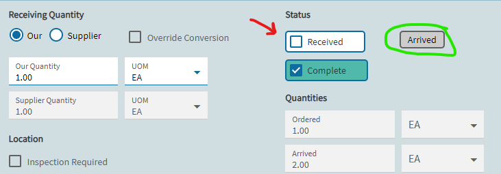 Those parts shouldn’t be visible as on-hand inventory until finally marked as “received”, but your PMs should be able to filter based on their “arrived” status, in a suitable dashboard.