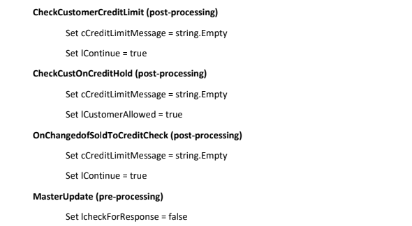 Good Morning, all! I have a situation where I need to prevent the message “This customer will be placed on Credit Hold. Do you want to continue?” based on a condition. I’m already preventing the customer’s Credit Hold status from being set, however I’d like to prevent this message from popping up. In the wisdom of our expert colleagues(Jose? Monty? Ali? Master Sisson? etc.), what would be the best way to prevent this message? Any help will be greatly appreciated!