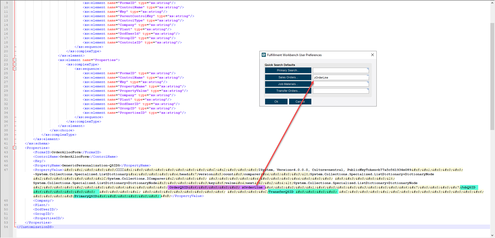 We have a quick search set for orders in the Fulfillment Workbench, but whenever we set the “Fulfillment Workbench user preferences->Quick Search Defaults” to the chosen Quick Search it replaces the base search.