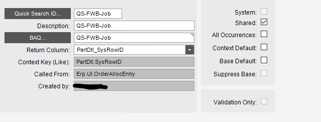 The Fulfillment Workbench is such a pain to work with and this is no exception. Instead of this living in the Ice.QuickSearch table, which would be global and easier to work with, it saves it as a personalization for the user in the Ice.XXXDef table.