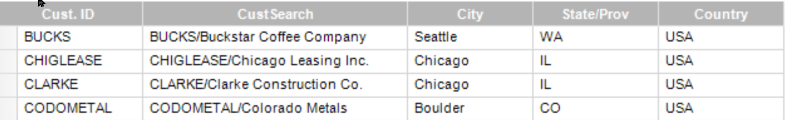 I have always been a fan of clicking [Ctrl][S] after putting the first few letters of a customer in the custID field and the search window would open with the search results.