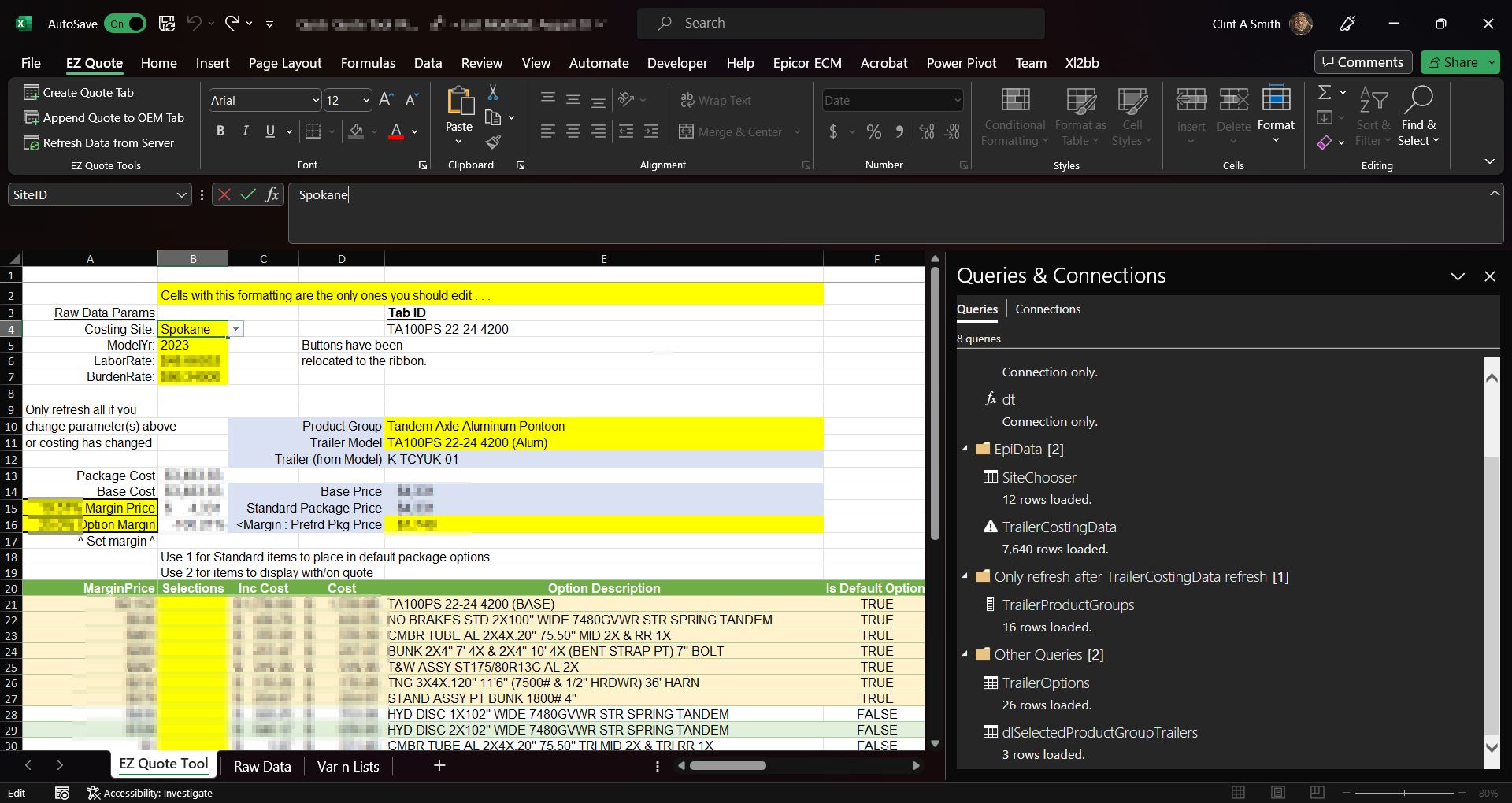 Workbook (does allow for full costing data pull using parameters through odata) screenshot: