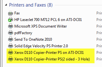 For example, I have two “printers” setup for the one Xerox D110 printer we have.