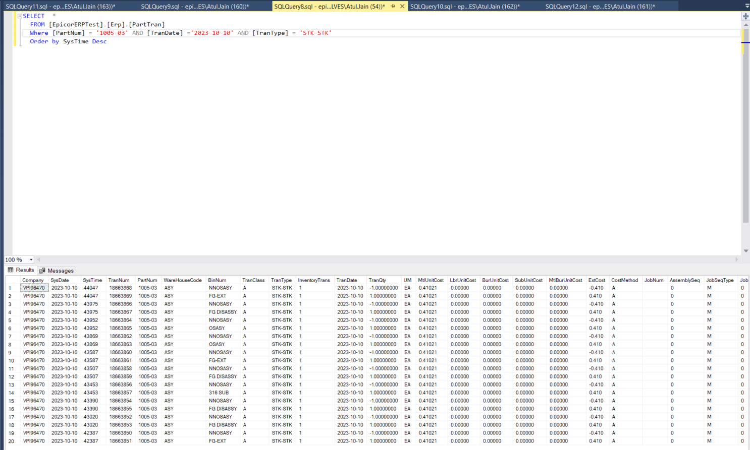 Like I said, part tran usually stores every transaction for a part.