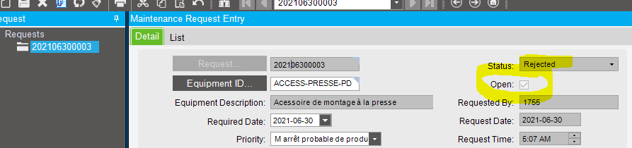 I have juste noticed that amongst all rejected maintenance requests, there are over 70 of them that have an ‘open’ checked status.