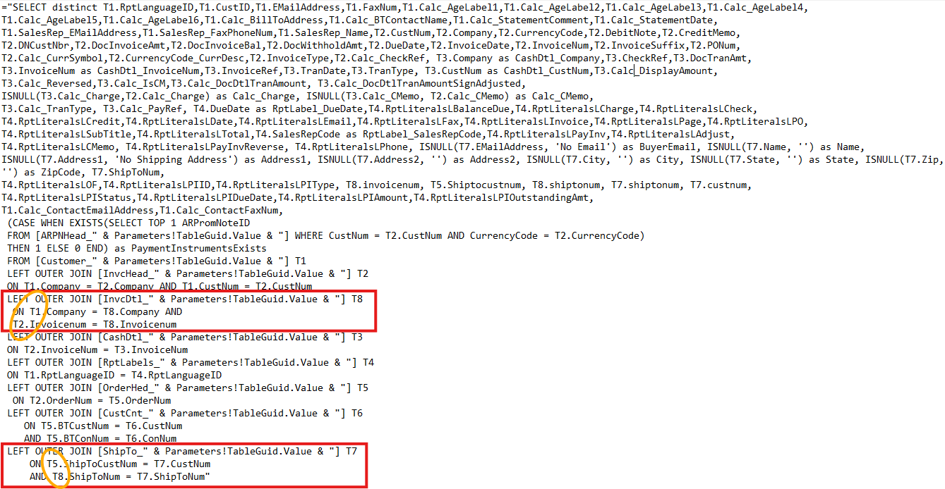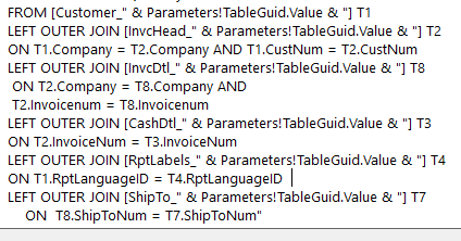 LEFT OUTER JOIN [InvcHead_" & Parameters!TableGuid.Value & "] T2