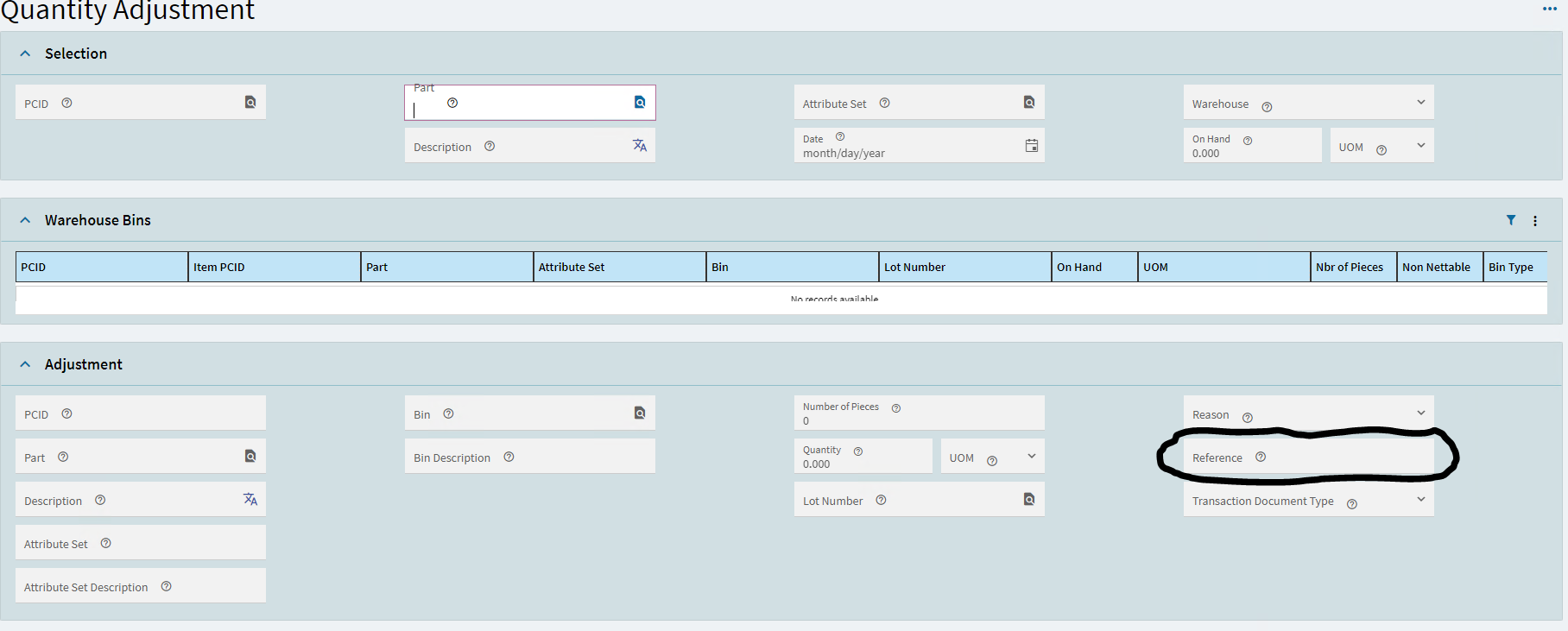 I need the reference and Reason Code that is used in Qty Adjust.