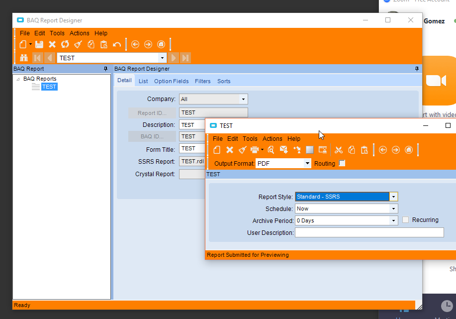 In 10.2.200.10, I created a new Report Style with a BAQ RDD for a BAQ that had parameters (because the BAQ Report Designer doesn’t support setting BAQ parameters, at least it’s not obvious if does). This particular BAQ has a custom GetList post directive to do some additional processing.