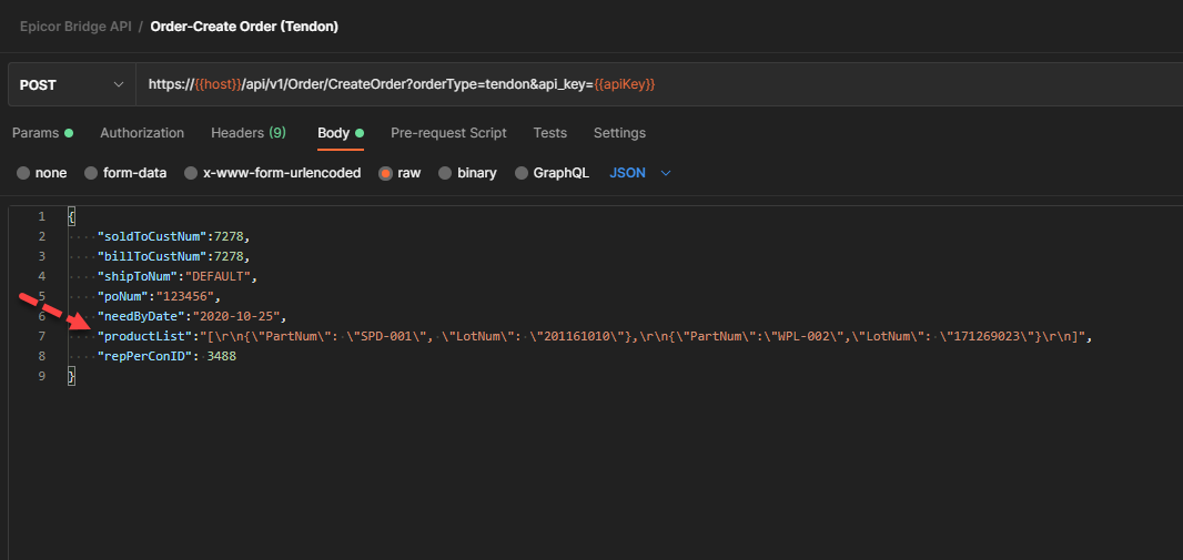 I created the request signature with a string variable “productList”, which will represent the serialized string of products I will parse