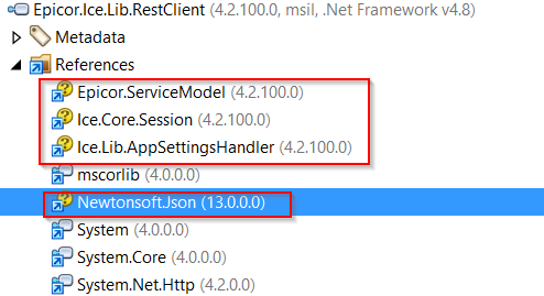 Update, no go. I’ve removed and replaced the assembly reference to Epicor.Ice.Lib.RestClient.