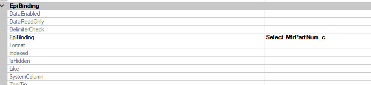 ((EpiDataView)oTrans.EpiDataViews[“Select”]).dataView.Table.Columns.Add(“MfrPartNum_c”, typeof(String));