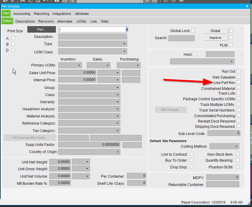 That checkbox is on the Part table, not the PartRev table. So it wouldn’t know which rev was supposed to be “that” revision.