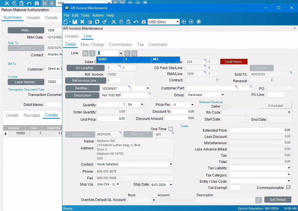 So first things first, do we think this is a quirk (Dare I say bug) of the RMA credit form and perhaps it’s missing a method when it loads additionally (I see in a lot of RMA processing it does a Get Rows, then a GetList) . I have not tested this with Kinetic UI (anyone