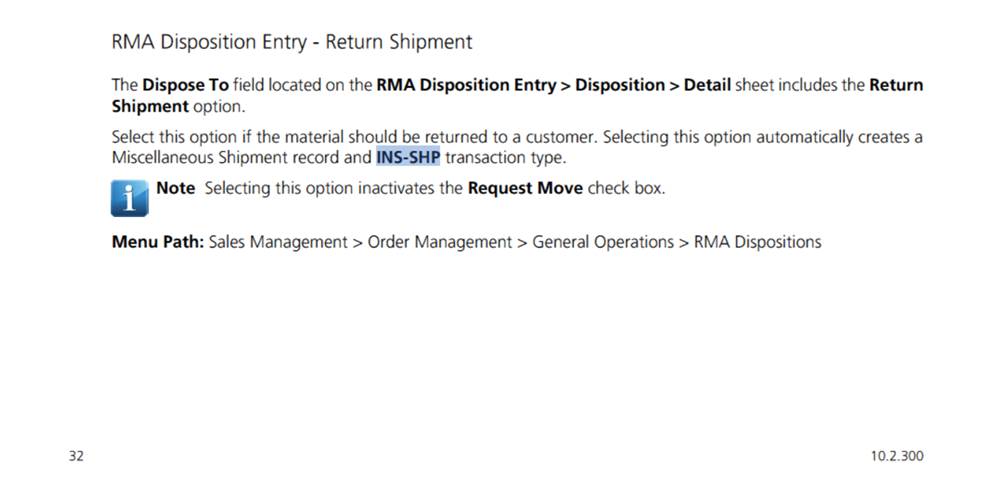 In a nut shell, it looks like they are saying the “INS-SHP” is to undo the “RMA-INS” tran (that happens when you receive an RMA), when you want to reject the RMA, and send it back to the customer.