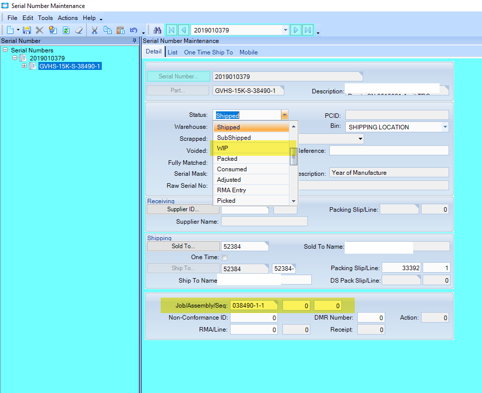 Is there a way to salvage a serialized lower level part off of an assembly? When trying to use the “job receipt to salvage” application it doesn’t find the matched SNs for that assembly, it only allows to create a new SN off of a salvaged part. This isn’t helpful as we would like to return the original SN of the lower level consumed part in order to DMR it back to a supplier.
