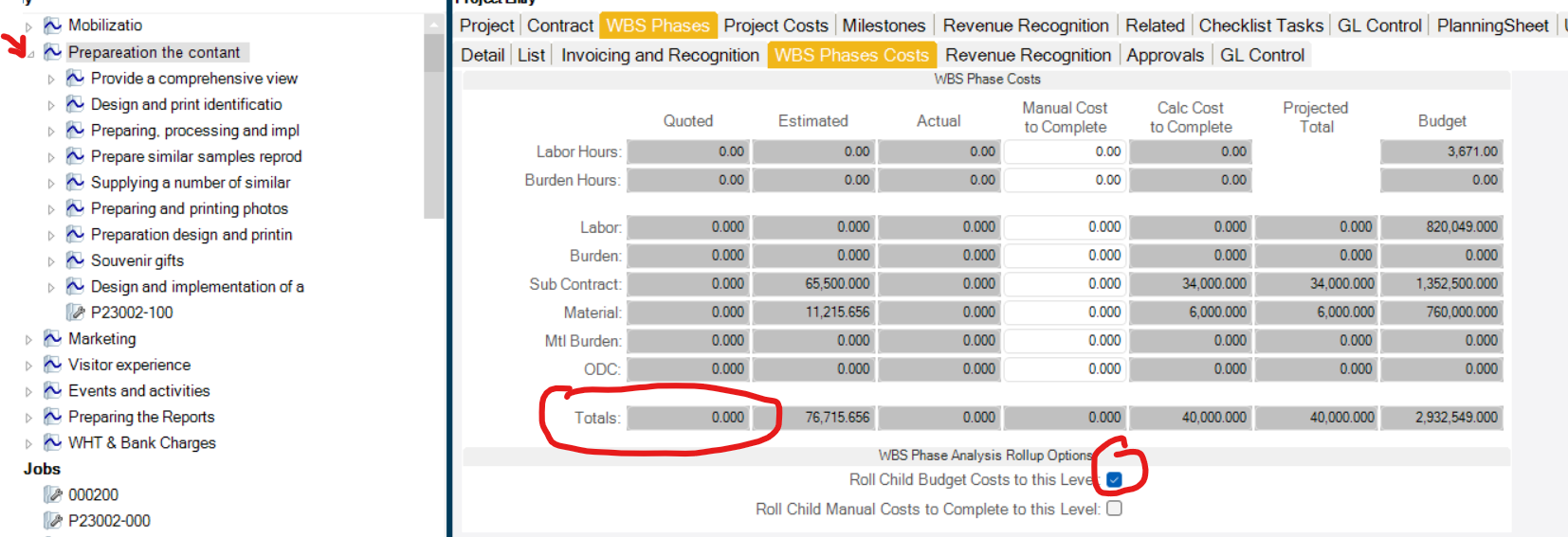 The quoted lines cost that allocated/linked for each deliverables/work package are not rolled to the