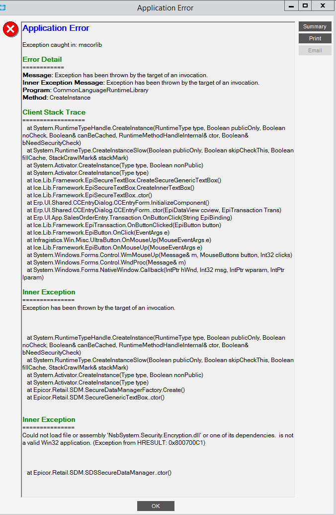 Attempting to process a credit card for a sales order. Getting an error could not load assembly NsbSystem.Security.Encryption.dll (or one of its dependencies) is not a valid Win32 Application. Anyone?