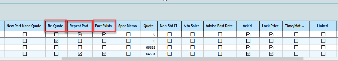 The Re-Quote check box would be the more difficult one to automate as we have parameters behind it to know when something needs to be requoted… Sometimes these parts are not setup in part master yet.