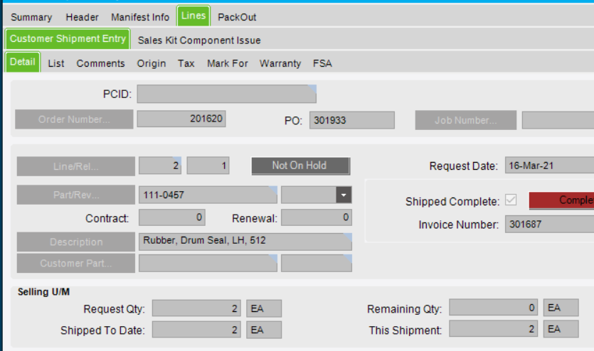 You’re welcome Matt. FYI, you can close the individual line manually (or via DMT) as well, I think I would do this because the order will not close automatically when the rest ships due to the one that open that has shipped. You’ll have to keep checking back on it.