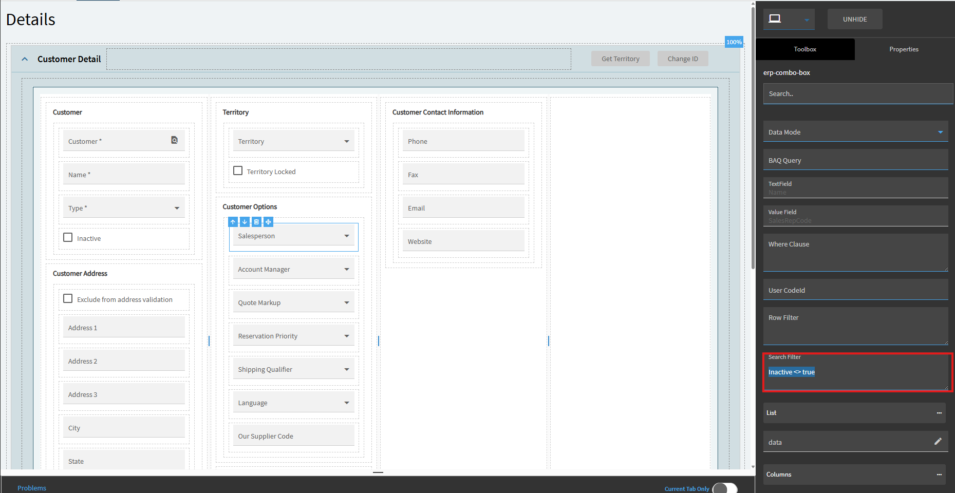 Would i do it in the section on the screen grab below where it already has a filter for Inactive? If yes, how would i separate it, would it just be something as simple as ‘Inactive <> true and Rolecode = SalesRep’?