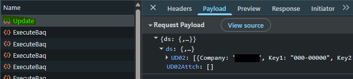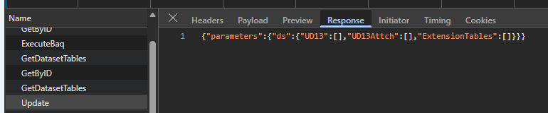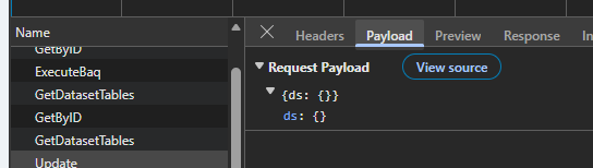I’ve taken a look at the ds data on the network call stack and it seems like on the update that my payload isn’t populating anything. just says ds{} and thus the response is reading empty. I also know for certain that I am getting an entry on my GetByID as it shows accurately in the response for the event call.