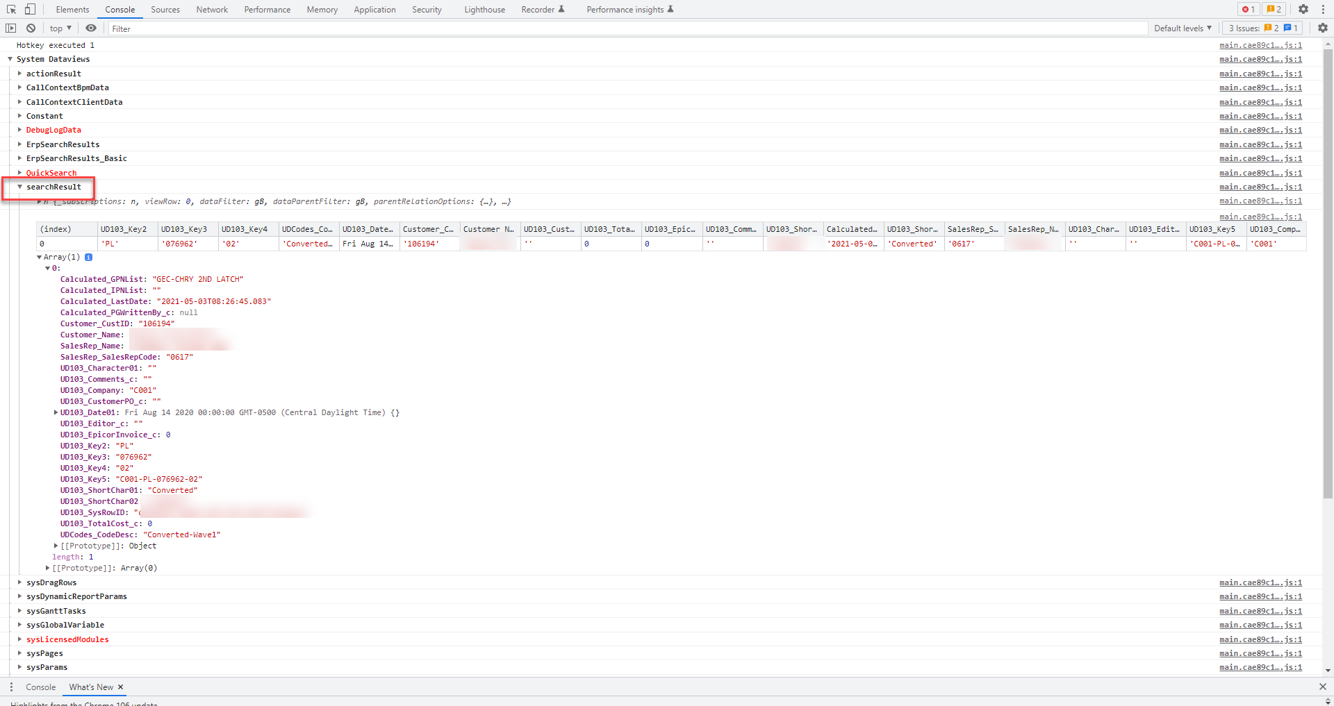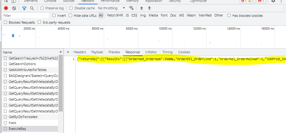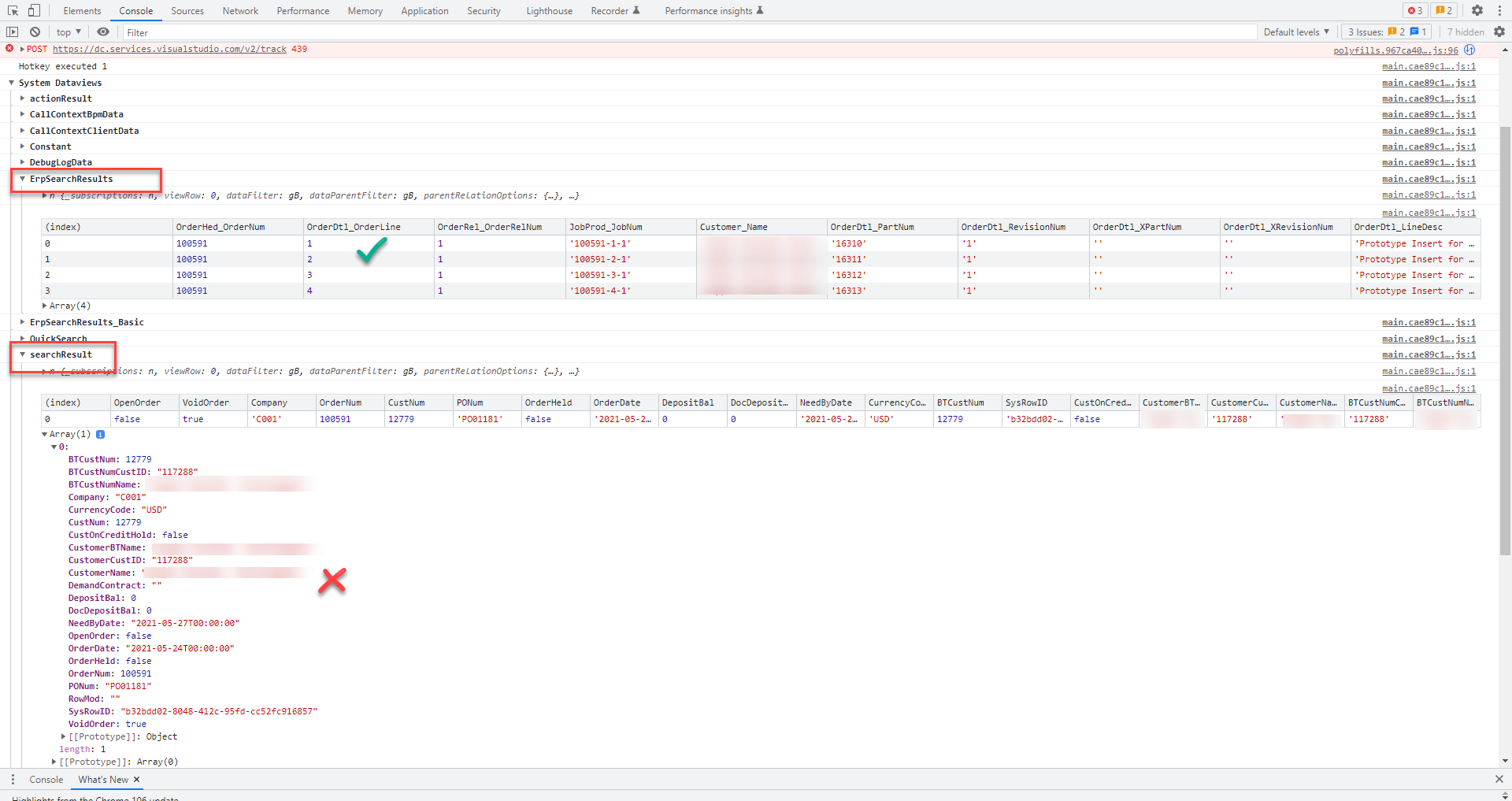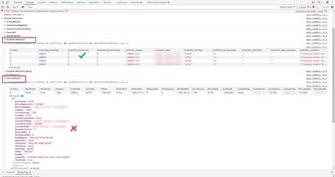 However, for the Erp tables, it shows the proper search results in ErpSearchResults, but when you select one, the row in searchResult is not correct. It’s not from the BAQ–it’s from the SalesOrderSvc.