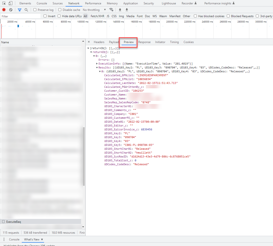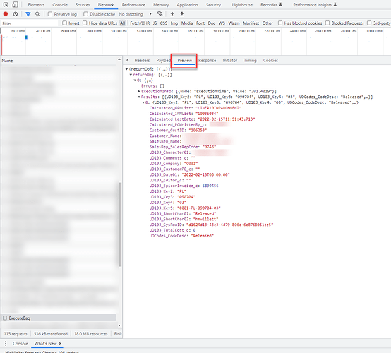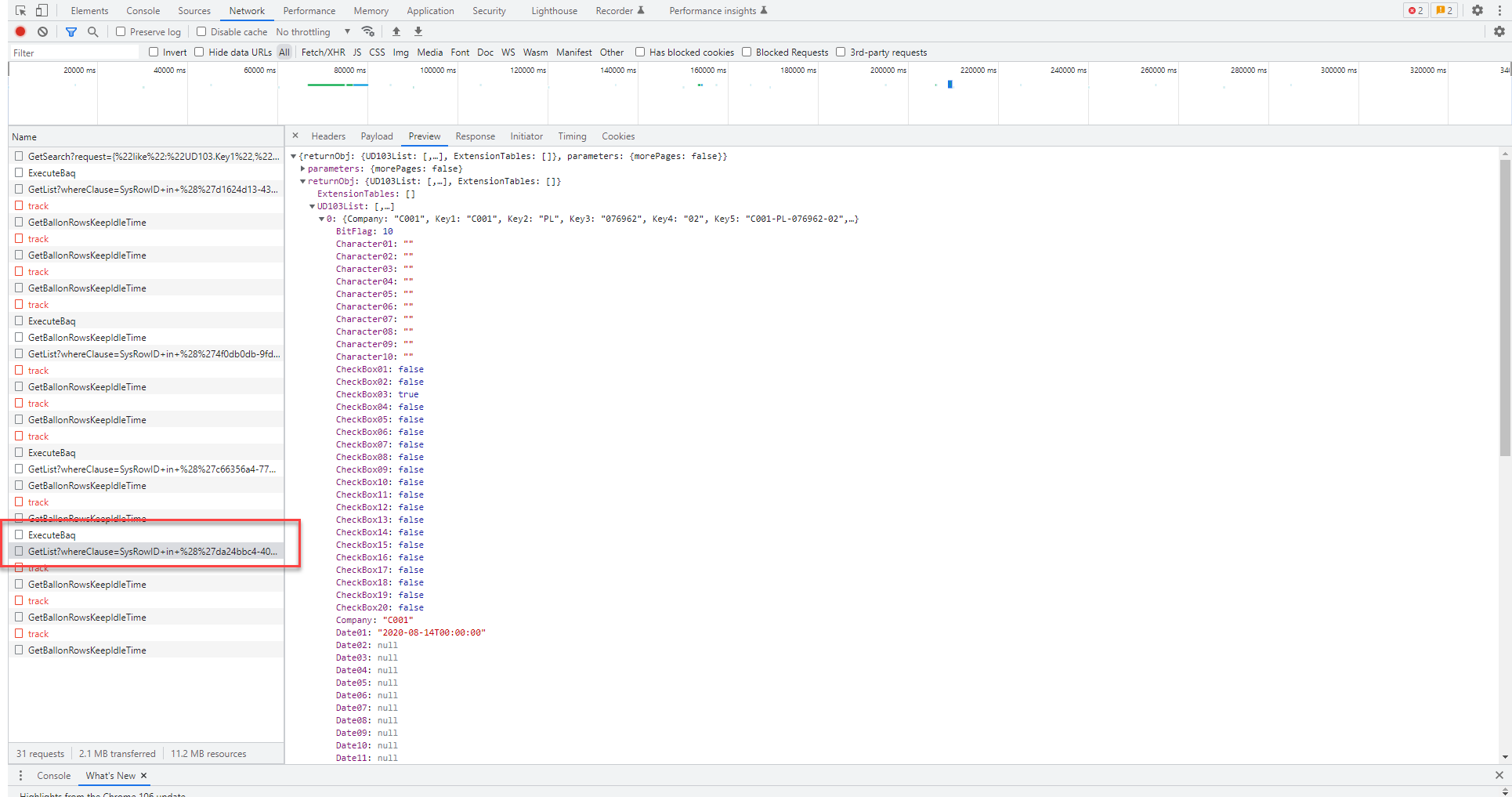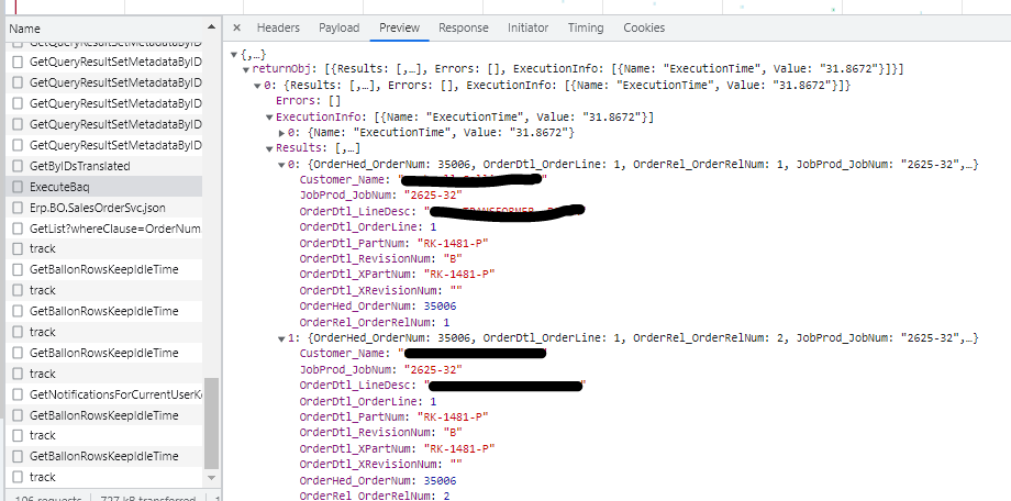 And to touch on your earlier point about the GetList being called after the ExecuteBaq, when I do the UD103 one, it shows the UD103List table which does not include my BAQ columns, but that does not seem to matter as shown by the prior screenshots.