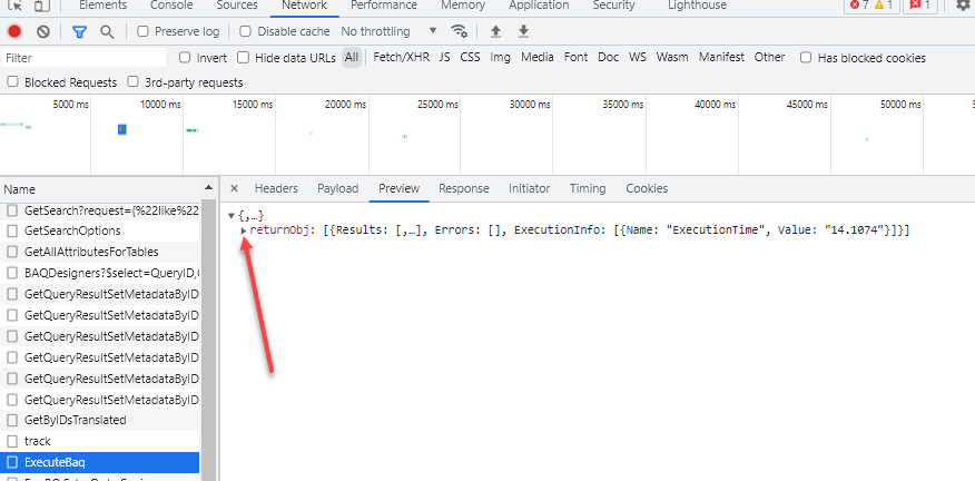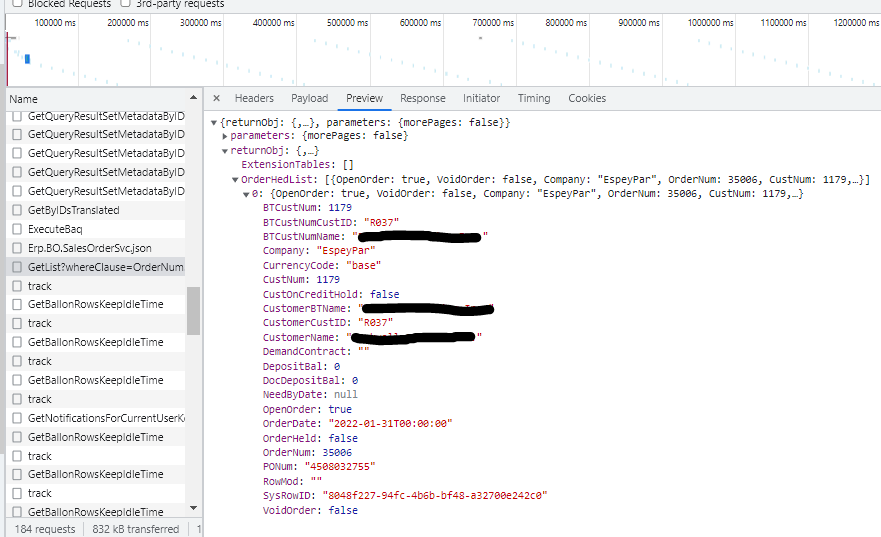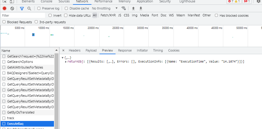One thing I noticed is after the ExecuteBaq there is a GetList that runs and this returns data from the standard Order search. Should this be executing?