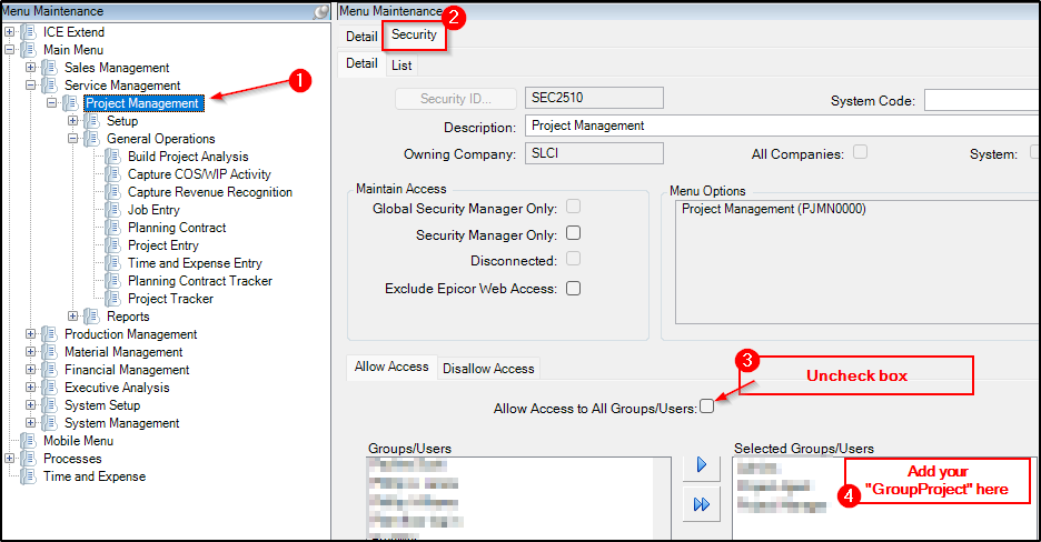 i can assign a securityID to each menu level but nothing else. How would i get User A to access Project Entry? I cant assign the securityID from any of the menu items to the group or the user…