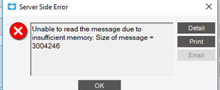 The Epicor client uses 32bit .NET and because of that the maximum theoretical amount of RAM that it can use is 2^31bytes (2.4GB) but in practice it is closer to 2GB because of .NET overhead. If you get this error message and if Windows is reporting that you have available RAM, you will need to reduce the demand for RAM that the Epicor client has access to by closing unused Epicor windows/modules. To get around the 32bit limitation on RAM usage, Epicor does have a 64bit client. To use the 64bit Epicor client, change your Epicor shortcut to point to the Epicor64.exe file instead of the epicor.exe (which is 32bit).