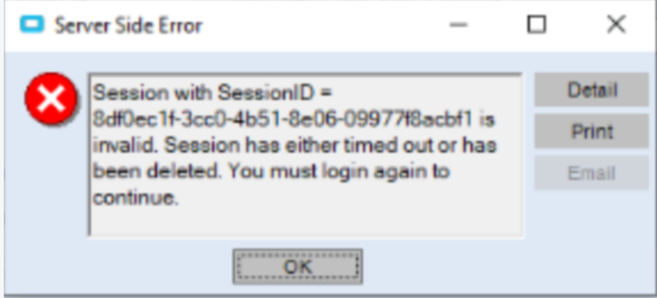 I tend to forget to log out of Epicor and find after sitting idle for 10 hours or more I can continue to work where I let off(my session is still valid), although occasionally I’ll get a session timeout and need log back in. I’ve never understood why, but it wasn’t a problem so never looked into it… Today a user is reporting that while actively working in Epicor they received a session timeout error(screenshot below). Please note I talked to the other person with access to Epicor Admin Console and they did not delete the session.