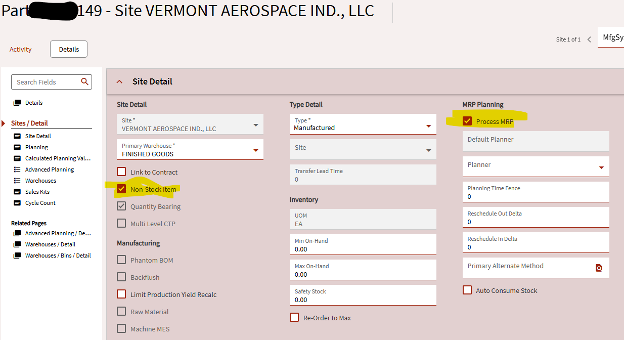 I thought I checked all the right places. In Part Entry I set the parts as non-stock = true. In Engineering Workbench I opened the sub-assembly, and set both parts to plan as asm = true. As far as I can tell, both materials are setup the same way.
