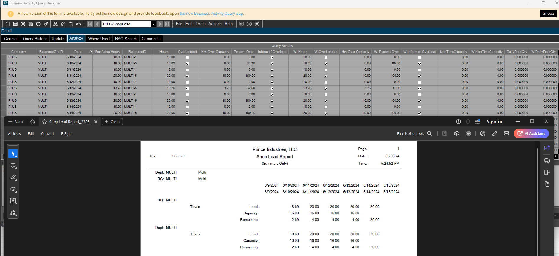 - BAQ shows 28.69 hours total, it is overloading Multi-5 by 8.69 hours.