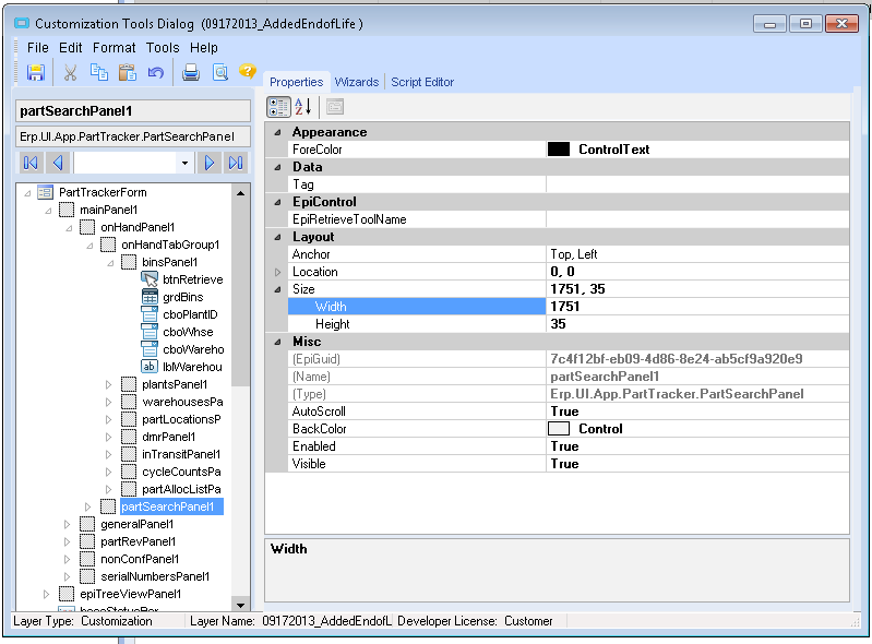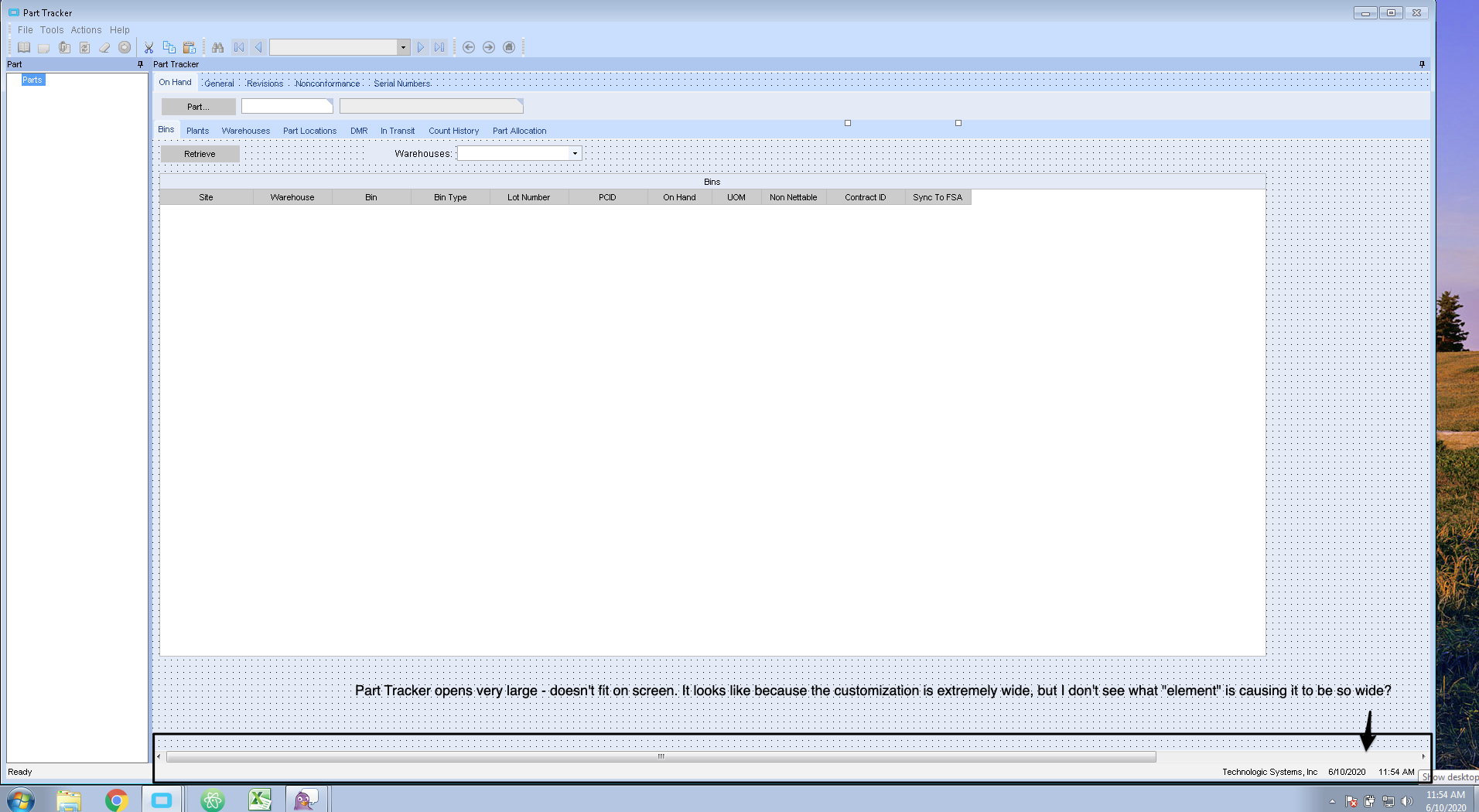 Click on “PartTrackerForm” in the top left tree and try to set the dimensions you want manually.