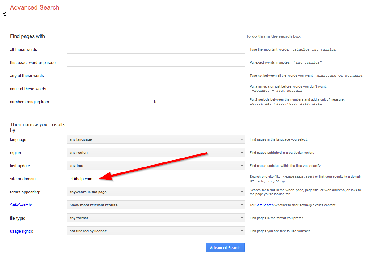 e.g. thinking of examples I’ve seen in Google’s Advanced Search: