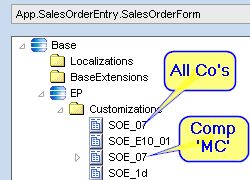 I find it a little bit odd that you can have two customizations with the same name, (but one is company specific and the other is All Co’s)